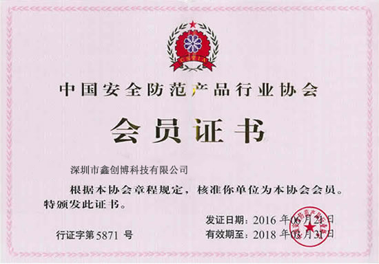 中國安全防范協(xié)會會員證書