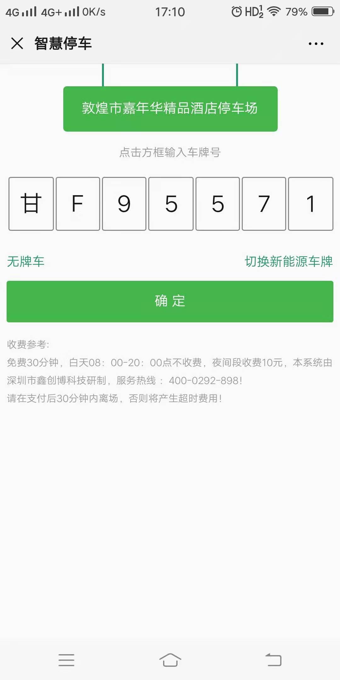 甘肅省敦煌市嘉年華精品酒店車(chē)牌識(shí)別系統(tǒng)正式啟用!項(xiàng)目為一進(jìn)一出進(jìn)出共用道閘,并且開(kāi)通微信電子支付,全程實(shí)現(xiàn)無(wú)人值守,感謝當(dāng)?shù)卮韺?duì)我司的大力支持!